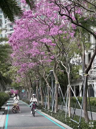 无论是海上世界文化艺术中心附近的簕杜鹃,还是女娲滨海公园的花海,抑或是半岛城邦外围骑行道上的紫花风铃木,现在都迎着春风摇曳,展露出最美的姿态。