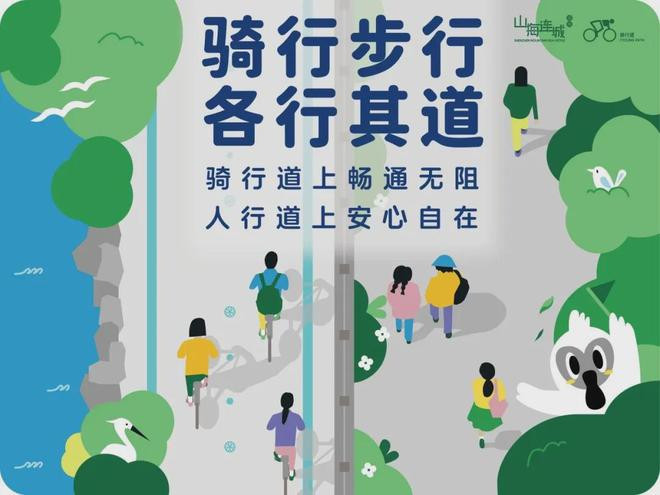 如果不确定线路是否有偏差,可沿地面青绿色划线的骑行道前进。