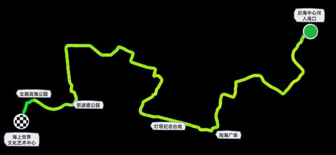 后海中心河入海口—深圳滨海休闲带海监广场(在建)—阅海广场—灯塔纪念台地—海洋渔业大楼—防波堤公园—女娲滨海公园—海上世界文化艺术中心
